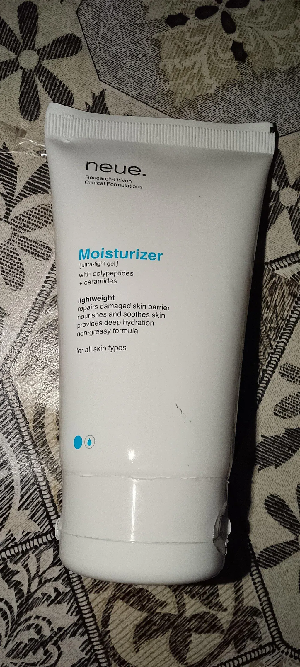 A gel moisturizer is a lightweight, water-based moisturizer designed to hydrate the skin without heaviness. neue. moisturizer is an ultra-light gel formula that absorbs quickly, delivering immediate and long-lasting hydration with hyaluronic acid, three essential ceramides, and peptides. It helps restore the skin barrier while leaving a fresh, breathable finish.