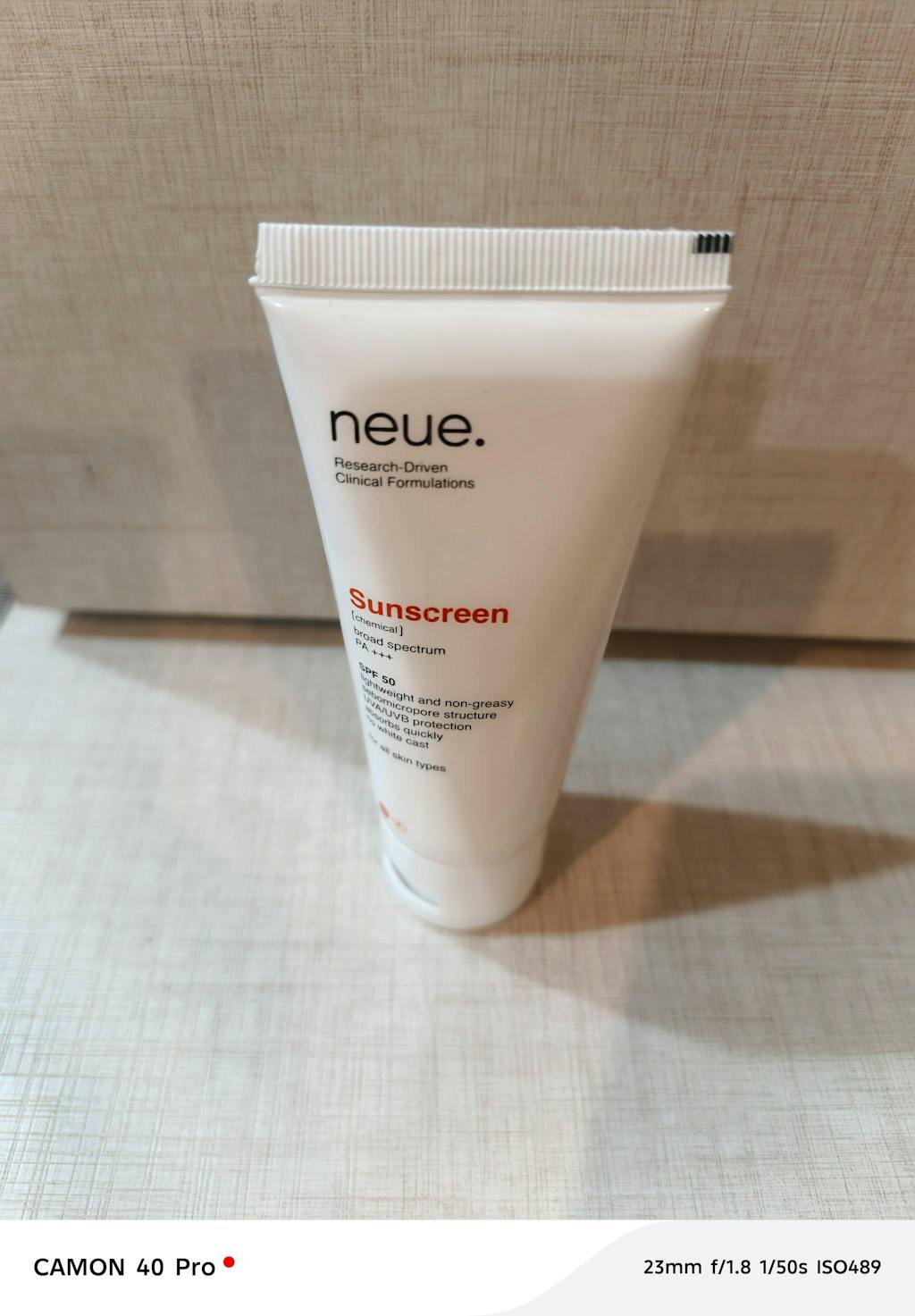 neue. sunscreen is a chemical sunscreen which offers lightweight, non-greasy protection against harmful UV rays, even in extreme conditions. As one of the best sunscreen in Pakistan, its Sebomicropore technology allows breathability and prevents sweating, while the non-comedogenic formula keeps pores clear. Suitable for all skin types, it absorbs fully without leaving a white cast. Enriched with hyaluronic acid, it hydrates and plumps the skin for a healthier appearance. Gentle, hypoallergenic, and safe for sensitive skin, it’s designed for everyday use—providing reliable protection with a comfortable, invisible finish.